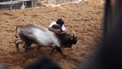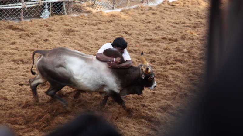 Jalli Kattu is symbolic of the intimate bond between cattle and agriculturalists. The fourth day of the Pongal festival is geared towards livestock. The animals are bathed, scrubbed and their horns painted. The sport consists of holding on to the hump of the bull and running along with it for a given distance usually about 20-30 meters which is covered in barely 10-20 seconds. The main rules of Jalli Kattu is that even one drop of the blood of the ox cannot be spilt which is strictly followed by the organizers.