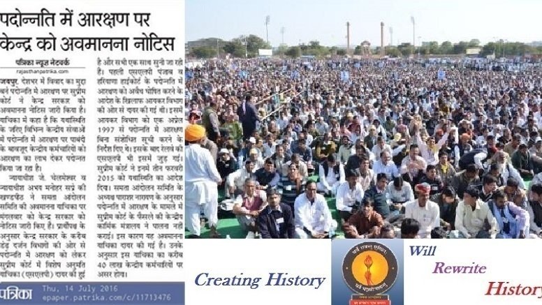Petition updateSamta andolan instensifies to stop reservation in Promotion immediately.Contempt notice issued on CP 314/2016 of Samta Andolan Samiti