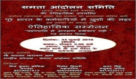 Huge gathering expected on 31st July 2016 at Jaipur at 14.00 hrs