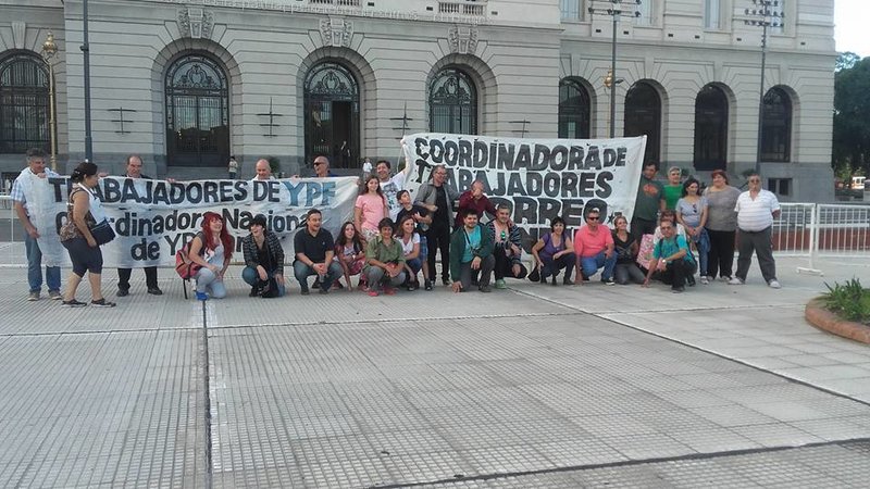 Las Coordinadoras de ex-Trabajadores de Correo y de YPF en el día del trabajador Telepostal 07/04 en lucha por la ley de resarcimiento y por el pago ya.