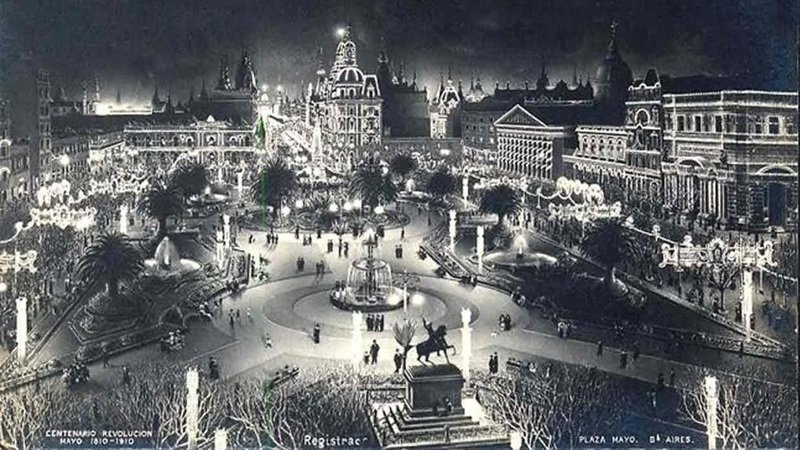 El 25 de mayo de 1908 se había inaugurado el teatro Colón, se acordó terminar el Palacio del Congreso y reanudar las obras de Tribunales. Para los festejos de 1910, se iluminaron las plazas de Mayo y del Congreso, con guirnaldas y diseños con infinidad de bombillas eléctricas, todo bajo la supervisión del ingeniero Jorge Newbery, director del Servicio de Alumbrado de la municipalidad.