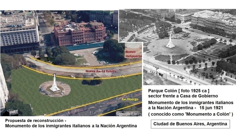 Se ha estimado que en la Argentina viven 25 millones de descendientes de italianos, lo que significa que un 65 % del total de la población tiene al menos un ancestro italiano. Estos inmigrantes (junto a los españoles) en ocasión del Centenario, honraron a la Argentina con un monumento frente a la Casa de Gobierno, en el cual se ve representado al navegante Cristóbal Colón junto a otras catorce figuras alegóricas, y la Nación toda los recordó siempre de ese modo. Hasta que a alguien se le ocurrió “borrar” del eje cívico-histórico de la Ciudad todo rastro de esta parte de nuestra historia, siendo que bien podría haber dado un ejemplo de coexistencia entre ambas esculturas (Colón y Azurduy) o erigir nuevas, como por ejemplo al Beato Ceferino Namuncurá.