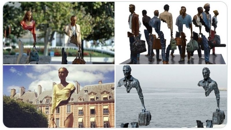 Comparto estas estatuas de inmigrantes, donde el autor plasma el vacío que lleva por dentro la persona que deja su país, su gente, sus costumbres, sus anhelos, su vida. Tremenda obra ! Diseñada por el escultor Bruno Catalano (francés), uno de los mejores escultores surrealistas contemporáneos.