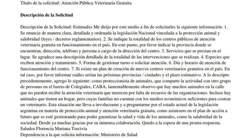 Les adjunto el pedido realizado ante el Ministerio de Salud para que puedan apreciar su contenido (el pedido es igual ante el resto de las oficinas)