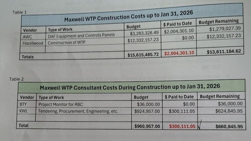 At the Special Meeting of January 16, 2026 the 1st Motion stated the Contract with KWL was for $925,000 for Engineering Construction Services. There’s never been a public cost breakdown of the $925,000, specifically the cost for Project Management and Engineering Services by KWL.