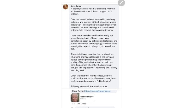 署名活動についてのお知らせFighting for Justice - Families calling for a Statutory Public Inquiry into MH ServicesFormer MH Nurse signs in support