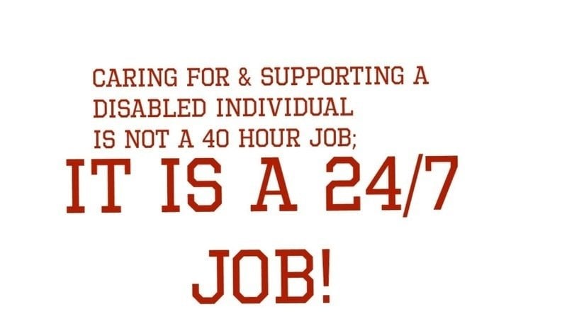 Caring for & supporting a disabled individual is not a 40 hour job; it is a 24/7 job.
