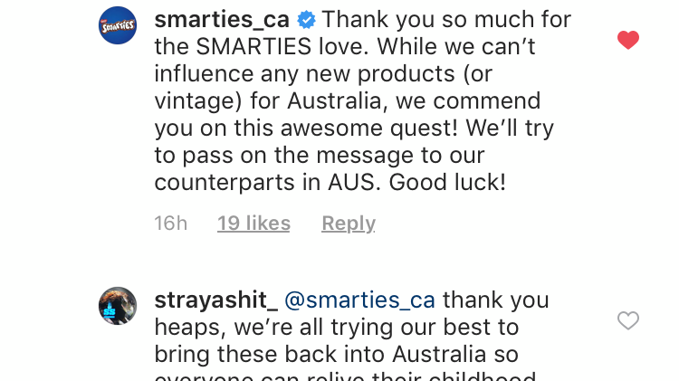 Smarties recently commented on one of the Smarties Pop Up petition posts that I put up showing that they’re gonna spread the info to their counterparts in Australia. Further information/updates to come.
