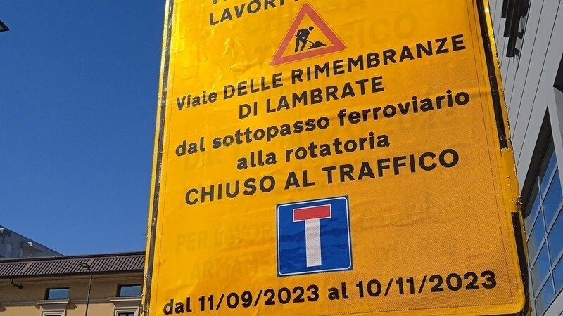 Mercoledì 6 settembre mattina nel quartiere Rubattino comparivano alcuni grandi cartelli stradali gialli che annunciavano la chiusura al traffico di viale delle Rimembranze di Lambrate dal sottopasso ferroviario fino alla rotatoria dall’11/9 al 10/11/2023, per lavori in corso. Contemporaneamente, file interminabili di cartelli di divieto di sosta con la stessa durata bimestrale spuntavano lungo il viale delle Rimembranze e la sua rotonda e le circostanti vie Saccardo, Rodano, Monte Titano, Muzio Scevola, Pini e Bertolazzi.