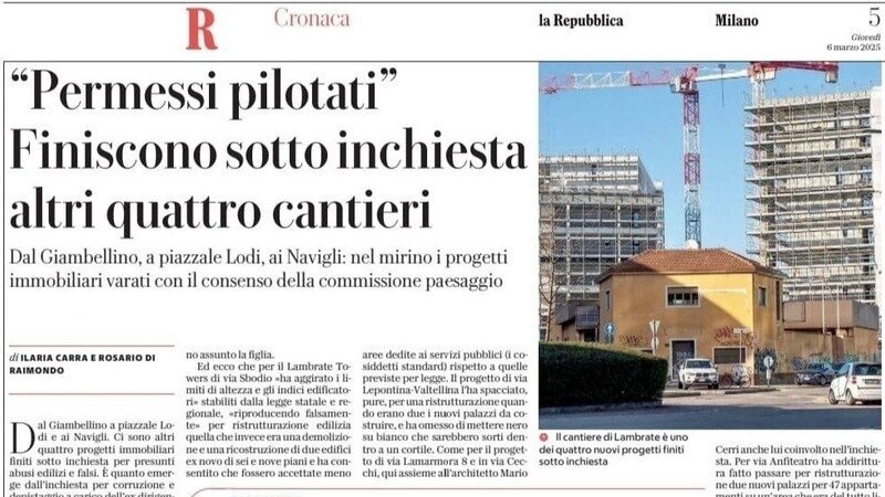Ed ecco che per le Lambrate Twin Towers di via Sbodio 'ha aggirato i limiti di altezza e gli indici edificatori' stabiliti dalla legge statale e regionale, 'riproducendo falsamente' per ristrutturazione edilizia quella che invece era una demolizione e una ricostruzione di due edifici ex novo di 6 e di 9 piani e HA CONSENTITO CHE FOSSERO ACCETTATE MENO AREE DEDITE AI SERVIZI PUBBLICI (I COSIDDETTI STANDARD)”.