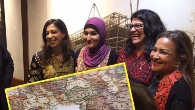 this is the photo from RASHIDA TLAIB being sworn into congress along side her Jew and Israel hating pals ... the anti Semitic remarks are ridiculous and unacceptable.. she must be removed from this position .