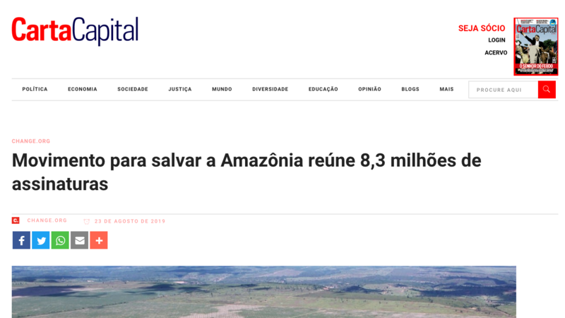 НовостиImpedir o desmatamento e exploração da Amazônia!Movimento para salvar a Amazônia reúne 8,3 milhões de assinaturas