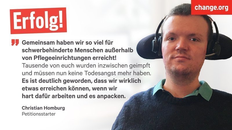 ich habe diese Petition nun auf Erfolg gestellt. Gemeinsam haben wir so viel für schwerbehinderte Menschen außerhalb von Pflegeeinrichtungen erreicht!