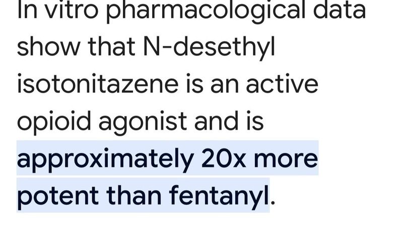ISOTONITAZENE came to our country in 2019. It is 20x stronger than Fentanyl and we all know know how many precious lives have been taking by Fentanyl and now we have this poison to worry about anlso and no one is informing us. We citizens have the right to know about any new poisons that are coming into our country and killing our loved ones. Why isn’t this all over the news??