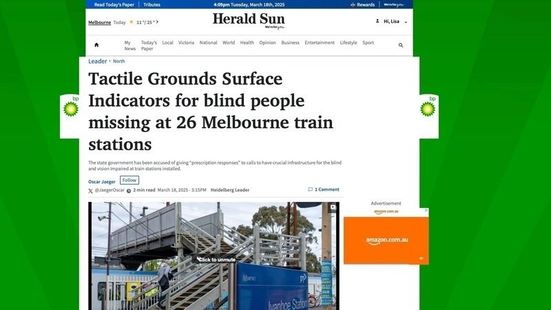 - We've had further interest from the media and today Oscar Jaeger from Herald Sun has published an article highlighting our petition and pushing for TGSIs at all railway stations. It's online Tactile Ground Surface Indicators for blind people missing at 26 Melbourne stations. Hopefully it may go to print tomorrow.