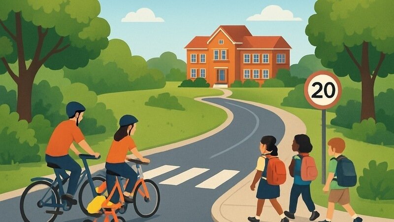Implement enforceable 20mph speed limits with traffic-calming infrastructure in the school vicinity