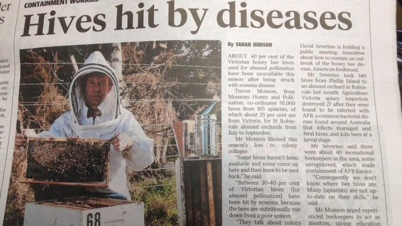 Scientist Rob Manning said Australia could get bee disease within two years if we put a temporary ban on moving hives around en masse. We have to get on top of disease. We need wisdom not greed. Short term pain for long term prosperity. Commercial beekeepers deserve Government financial assistance . Healthy bees are necessary for Australias food security.