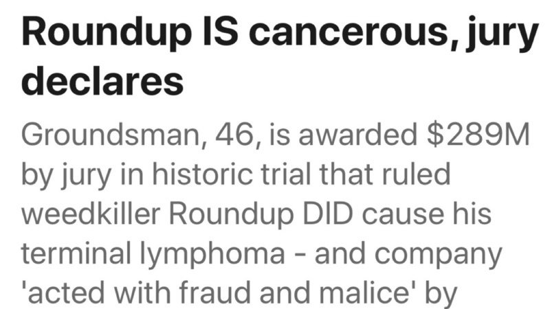 On Friday afternoon, jurors found Monsanto liable in a case over whether Roundup weedkiller caused a groundsman's cancer