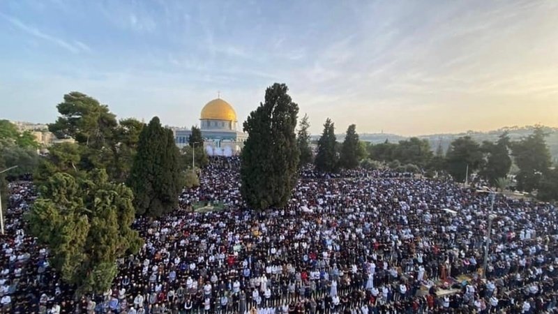 Massive crowds turn up for Eid Al-Fitr salah at Masjid Al-Aqsa.