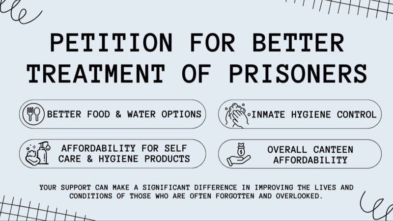 Additionally, the hygiene and food products available to inmates through the canteen are often overpriced and filled with chemicals that are not conducive to maintaining good health. It is crucial that these products are both affordable and safe.