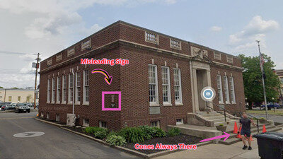 Moreover, a rusty sign on the side of the building, blending in with the brick, falsely states handicapped accessibility in the back. After calling the post office, I found out that this claim is untrue; they have no accessibility.