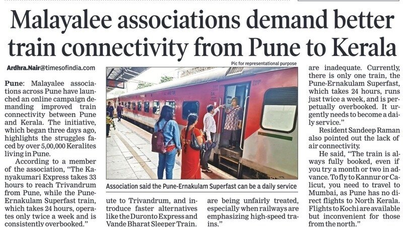 Petition updateImprove Train Services Between Pune and Thiruvananthapuram KeralaSunday 22 Dec 2023 Times Of India - Malayalee Associations demand better Train