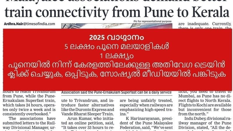 Petition updateImprove Train Services Between Pune and Thiruvananthapuram KeralaBetter Trains From Pune to Kerala - Let us work as a Team
