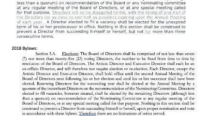As several of you were asking about board term limits, please know the information some had was based on bylaws from 2011. These indicate 2-year term limits for board directors with no more than 3 consecutive terms succeeding themselves. Updated bylaws dated 2018 state there are no term limits.