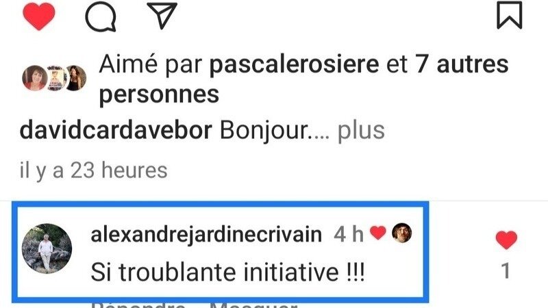 D'ailleurs ça y est, il a frémis. Comme vous pouvez le lire dans l'image jointe, il a réagi et écrit : "Si troublante initiative !!!"