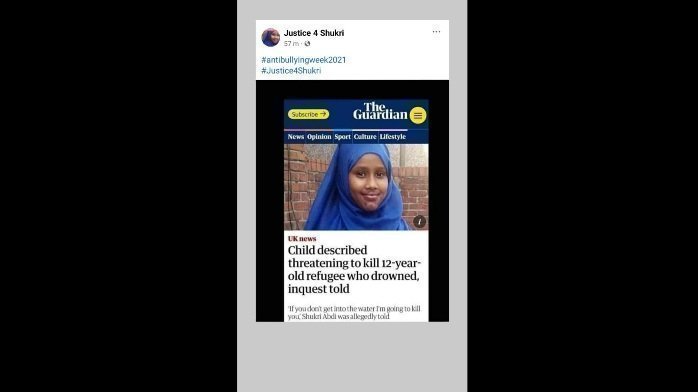 Please show your support by sharing the hashtag #Justice4Shukri to continue raising awareness of bullying and please continue supporting The Official #Justice4Shukri Campaign Team.