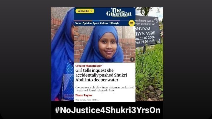As we draw closer to the 3rd anniversary of the tragic death of Shukri Abdi, despite alleged admissions of threatening to kill Shukri by Child 1 and a deeply flawed investigation by Greater Manchester Police investigating Shukri's tragic death, The Official #Justice4Shukri Campaign Team want to create a social media storm on the 27th June 2022 and would appreciate all of our supporters to switch their social media profiles for the day to an image of Shukri with the hashtag