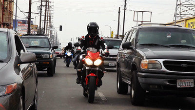 Lane splitting refers to the ability of a motorcycle to pass between multiple cars in traffic. Motorcycles help reduce traffic congestion by lane splitting.
