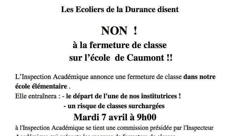 Non à la fermeture d'une classe à Caumont-sur-Durance (84)