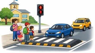 Instale um semáforo de pedestres na lombofaixa da escola