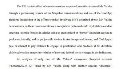 On October 14th, 2025 the Anchorage Police Department responded to an Anchorage home occupied by a 36yo male. Inside the home they found an unrelated 13yo female who "exhibited signs of extreme drug or alcohol intoxification and had difficulty walking and maintaining consciousness" according to a pretrial detention memo.