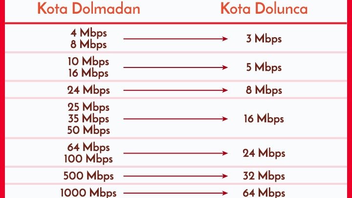 1 Mayıs’tan sonra kotam dolduğunda hızım kaç Mbps seviyesine düşecek?