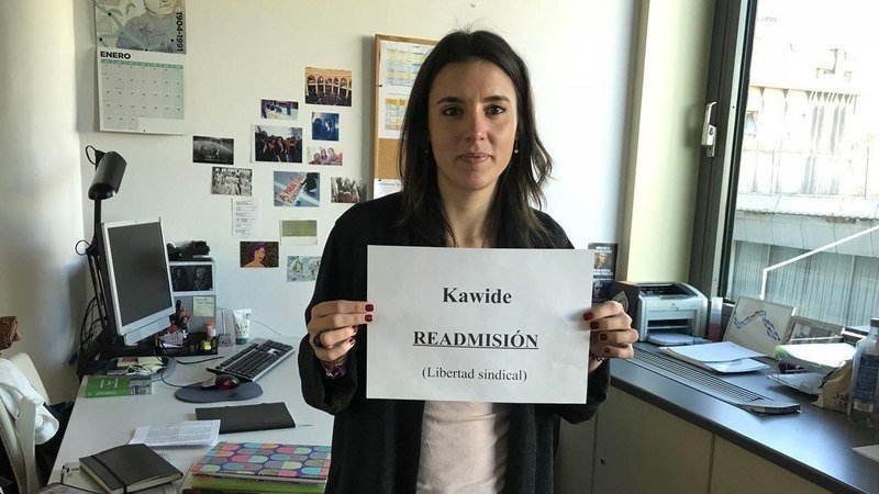 Esta semana, Irene Montero (portavoz de Unidos Podemos en el Congreso de los Diputados) y, entre otros, los diputados Rafa Mayoral y Alberto Rodríguez han pedido públicamente la readmisión de Kawide Valderrama por parte de Interurbana de Autobuses (LYCAR).