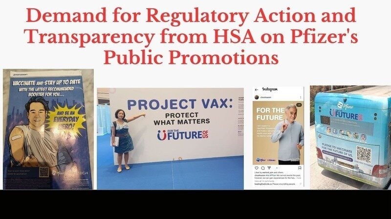 It is with immense sadness that after close to 2.5 years of dealing with the vaccination issues in Singapore, our problems seem to have gotten worse with Pfizer holding a public roadshow in Suntec City over the weekend, violating regulatory guidelines.