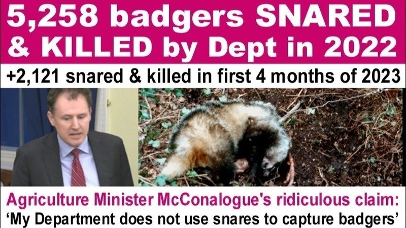 Despite the fact that the unfortunate badgers are all caught by snares, Minister McConalogue incredibly claimed that “my department does not use snares to capture badgers”.