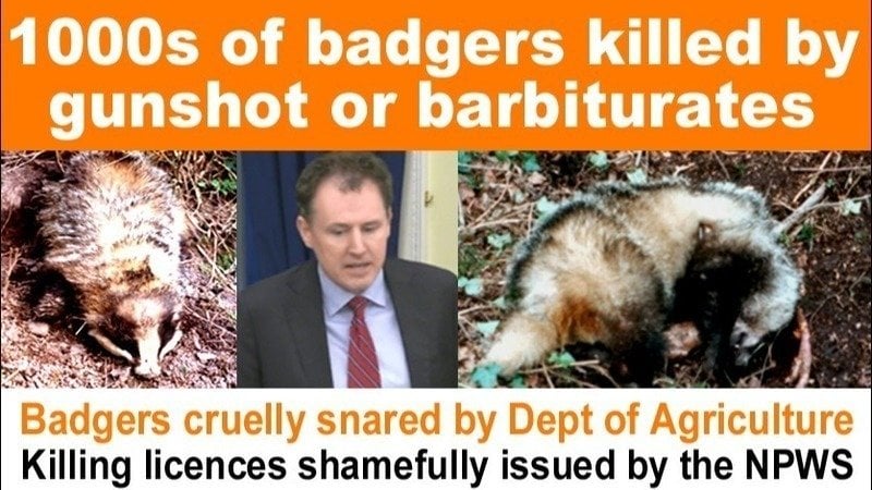 Minister McConalogue told her that the snared badgers are killed “by the use of a licensed firearm or by the administration of barbiturates by a Departmental Veterinary Inspector”.