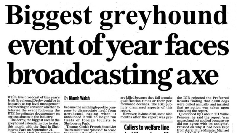 It stated that 16,000 greyhounds are born each year, of which 5,987 are killed because they fail to make qualification times or their performance declines. The IGB publicly dismissed aspects of this report.