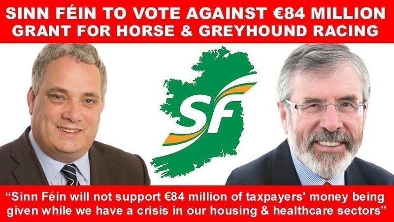 In a statement from the office of Gerry Adams TD, the party said: ”This afternoon Sinn Féin will call a vote to oppose the Fine Gael proposed Horse and Greyhound Racing Fund Regulations motion. Since 2001, the horse and greyhound industries have received over €1.4 billion in taxpayers' money and Sinn Féin will not support an additional €84 million of taxpayers' money being given to such industries while we have a crisis in our housing and healthcare sectors. Furthermore, much of the money given to the horse racing industry ends up as prize money in the pockets of wealthy horse owners and trainers.”