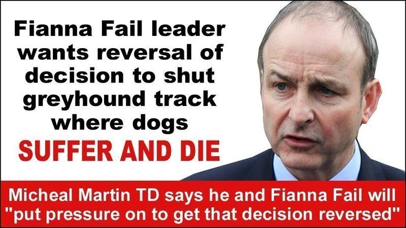 Speaking to Wexford Today this week, Micheal Martin said that he and Fianna Fail would engage with those involved in greyhound racing and "put pressure on to get that decision reversed" https://youtu.be/rpp65O3sfa4