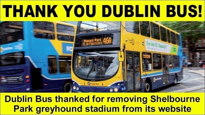 “We have now removed Shelbourne Park from our website”: A big THANK YOU to Dublin Bus for this week deleting a greyhound racing page from its website.