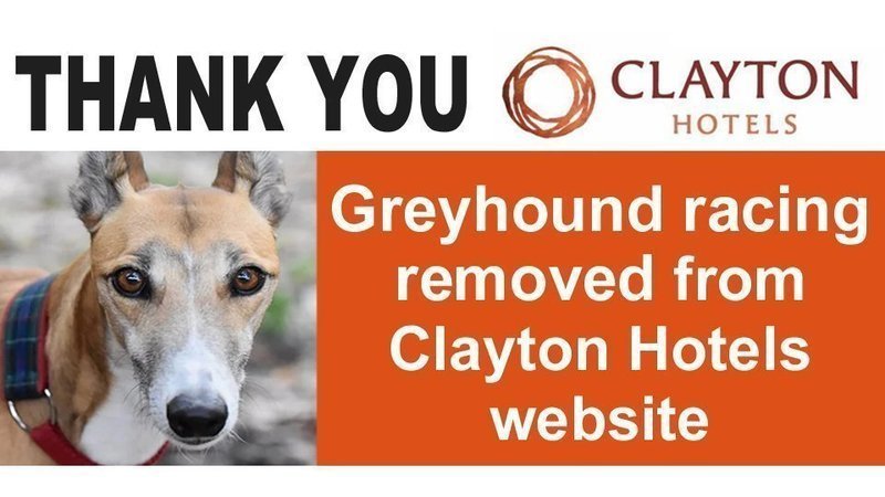 A big THANK YOU to Clayton Hotels for this week deleting Irish greyhound racing pages from its website.