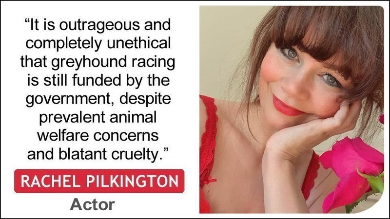 Actor Rachel Pilkington has joined calls for an end to the massive state grants that are keeping cruel greyhound racing afloat.