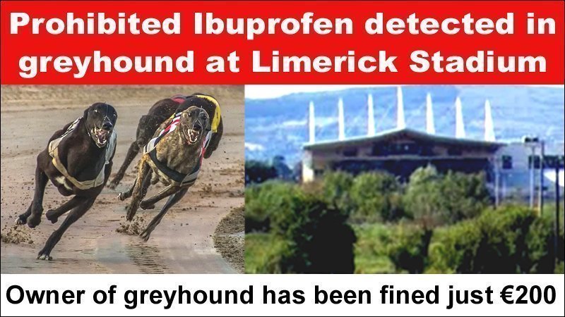 – Ibuprofen was found in a sample taken from greyhound Slippy Ned at Tralee stadium on 29th March 2019. The owner was fined just €200 and the €200 prize money was forfeited.