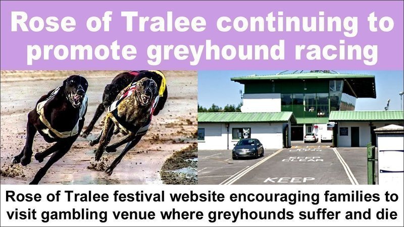 The Rose of Tralee festival is continuing to promote greyhound racing despite all the revelations about cruelty and killing.
