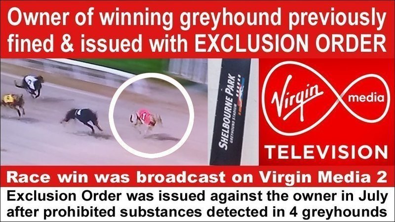The owner and trainer of a greyhound who won a race televised by Virgin Media on Saturday (17 Sept 2022) was issued with an EXCLUSION ORDER in July after four greyhounds tested positive for prohibited substances “that can raise serious issues for the greyhound industry”.