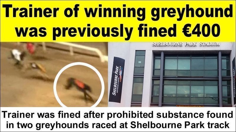 The trainer of a greyhound who won a race at Shelbourne Park Stadium on Saturday was previously fined after a prohibited substance was found in two greyhounds.